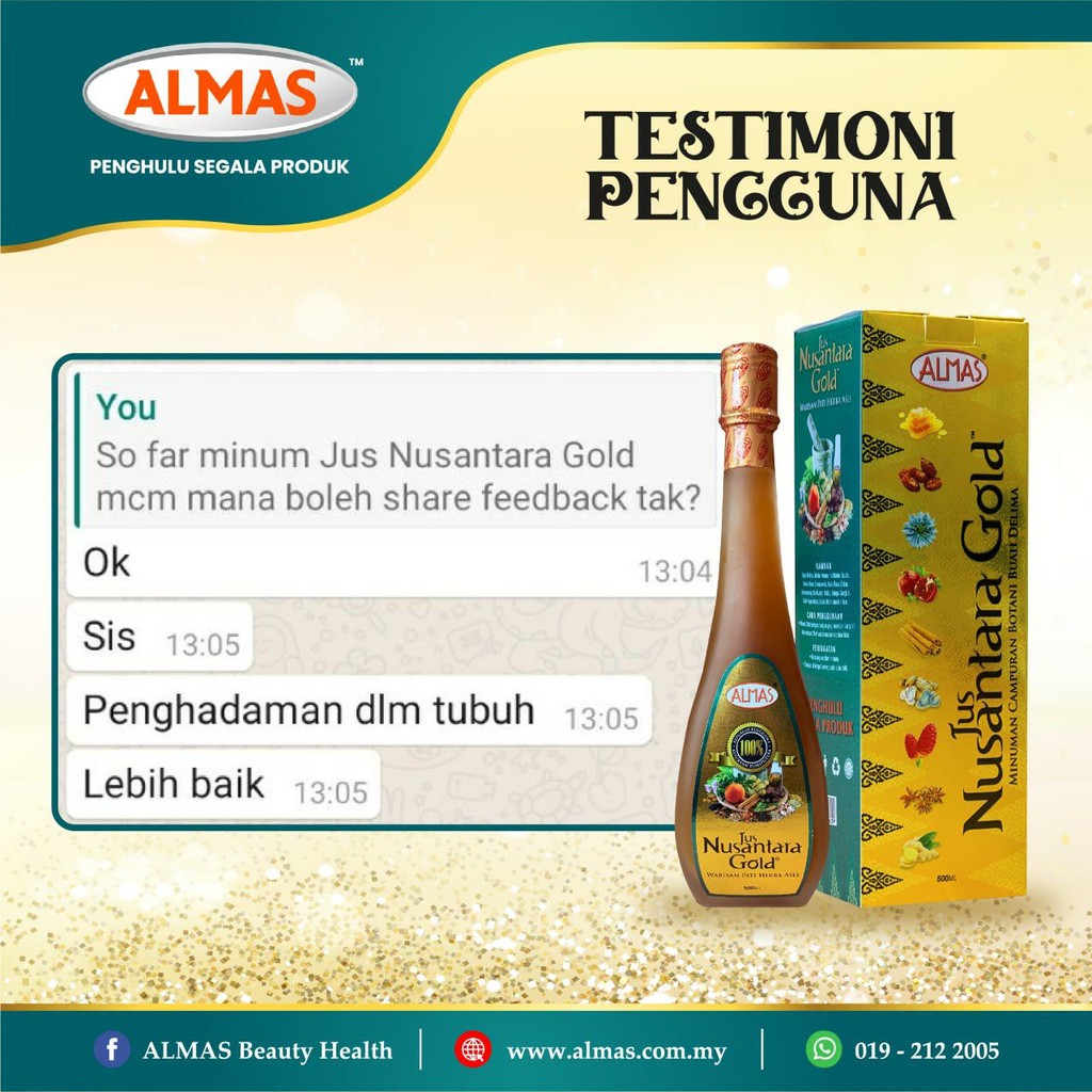 Almas Beauty Health Jus Nusantara Gold Produk Terlaris Almas Yang Mengandungi 1001 Khasiat Dalam Menangani Pelbagai Masalah Kesihatan Sangat Baik Untuk Kencing Manis Gout Buasir